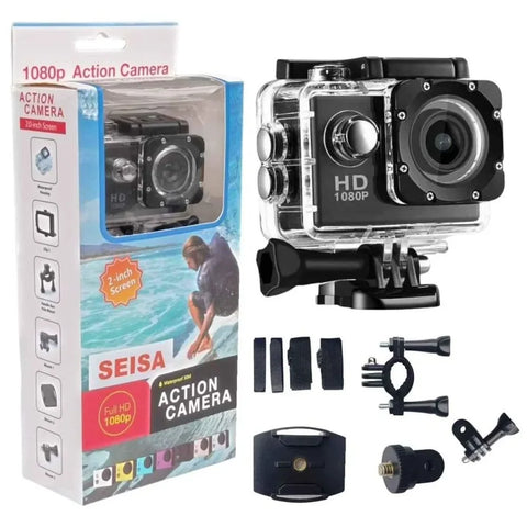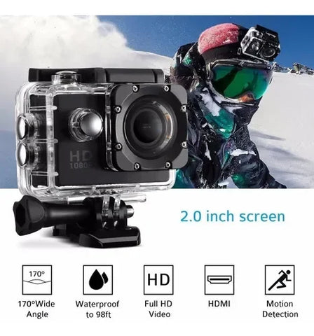 Descubre la cámara deportiva más versátil del mercado. Con calidad de video 1080p HD, carcasa resistente al agua y un completo set de accesorios, está lista para acompañarte en cada salto, ola o sendero.