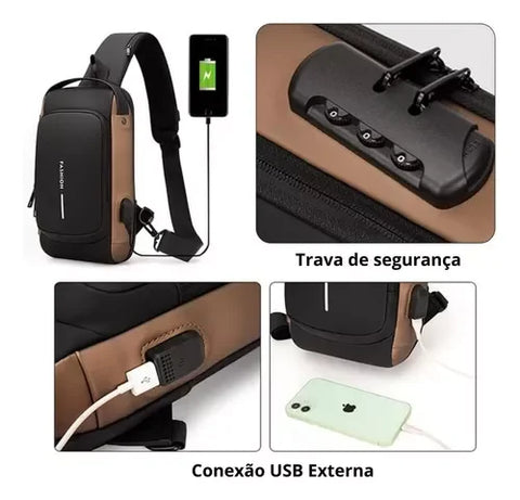 1x Bolsa de hombro antirrobo con carga USB